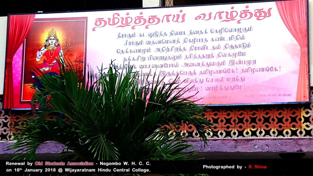 16.01.2018 அன்று பழுதடைந்த தமிழ்த்தாய் வாழ்த்துப் பலகையை ( Flex Board ) புதிதாக வடிவமைத்து, பாடசாலைக்கு அன்பளிப்புச் செய்யப்பட்டது.